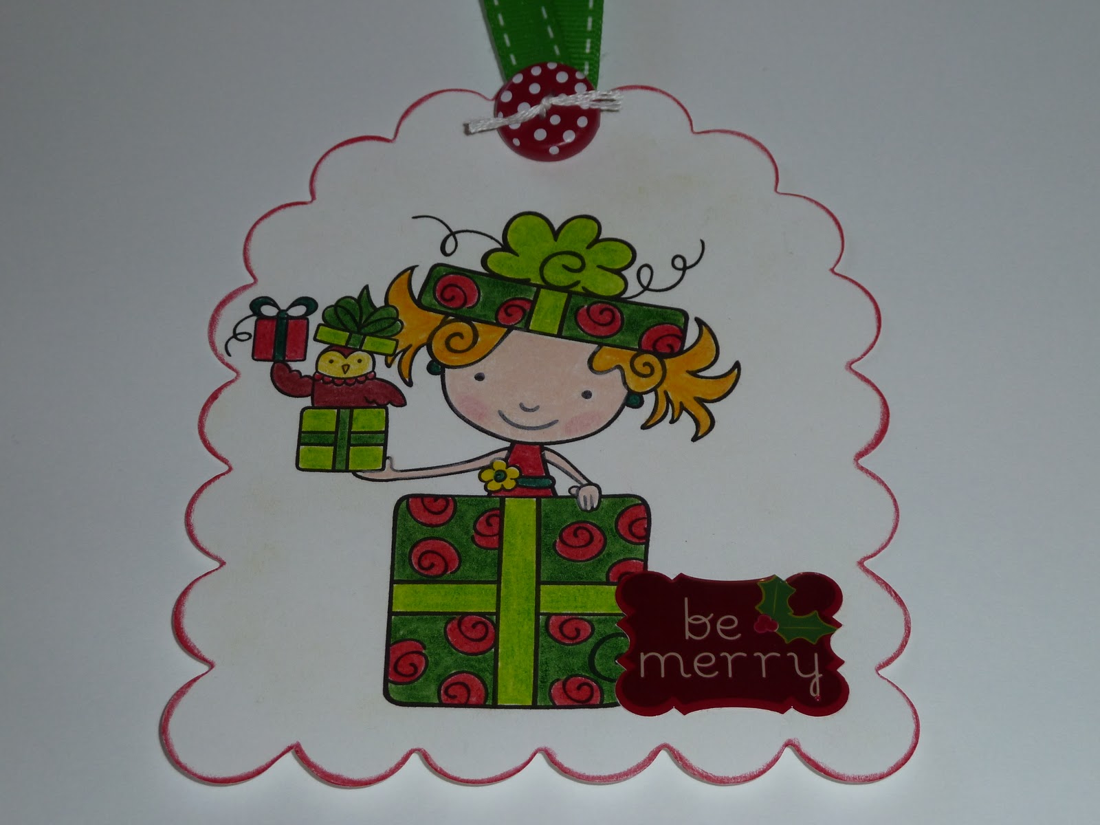I love to create tags at Christmas time to add to the top of a present. Adding a colorful tag under a beautiful ribbon can really dress up a present.