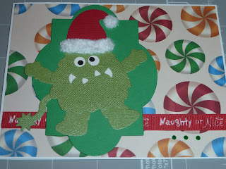 A friend of mine came up with this really cute die cut for a Santa Monster and I just had to make cards out of him for my nephews. The Santa Monster die cuts are available at Brockadoodle Treasures on Ebay here.