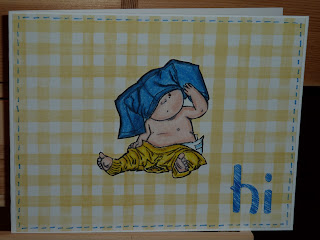 I found another cute stamp to work with today. This stamp is called Sumpins Wrong by Mo Manning. It is just the cutest little guy to have on a card to brighten someones day.