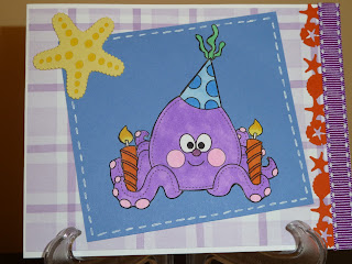 Ok who doesn't just love an octopus! This stamp is adorable and it makes a lovely card. The stamp lends its self to be colored bright colors of the ocean so your cards can be subtle or vibrant.