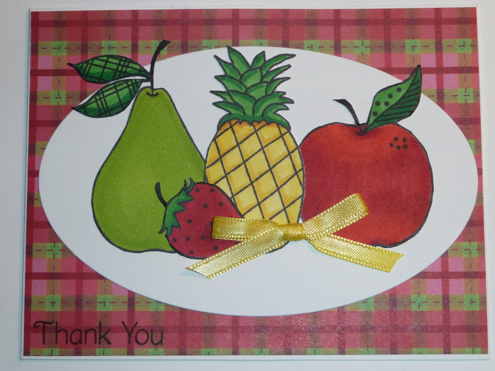 On a roll today, I got a new stamp set from Hero Arts and wanted to make a card with the stamps. New fruit stamps and what do you get a "Fruity Thank You" Hahaha. Ok a weird sense of humor!